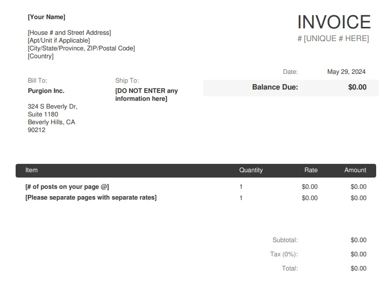 Example: If the invoice number last time was #1001, this time you will make it #1002